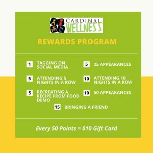 Cardinal Wellness is a Ball State University, student-facilitated program that sets the stage for families to engage in physical activity, learn about nutritious food preparation, and participate in nutrition and fitness assessments. The program provides a safe and convenient place to exercise with no cost for child supervision.